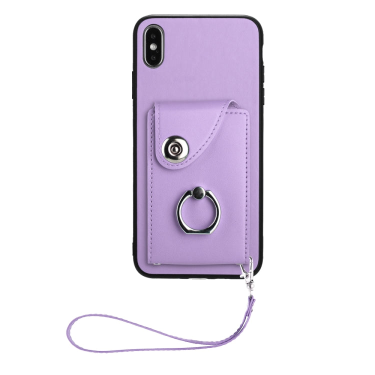 Funda para Teléfono iPhone Xs Max PU con Soporte Anillo Bolsa Tarjeta Cordón (Púrpura)