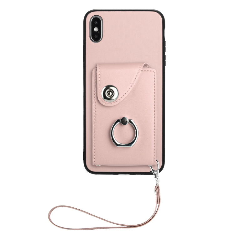 Funda para Teléfono iPhone Xs Max PU con Soporte Anillo Bolsa Tarjeta y Cordón (Rosa)