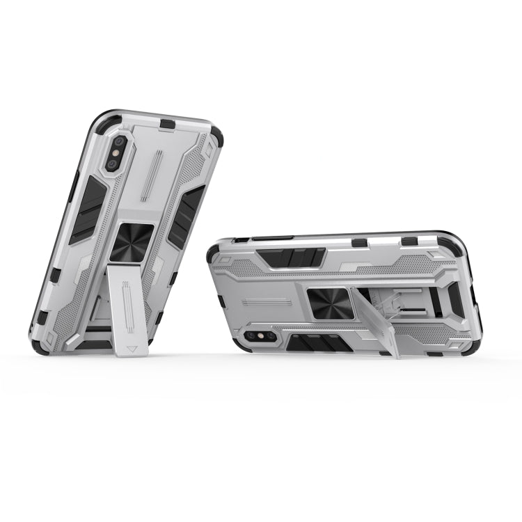Estuche protector para iPhone Xs Max Supersonic PC + TPU a prueba de golpes con soporte (Plata)