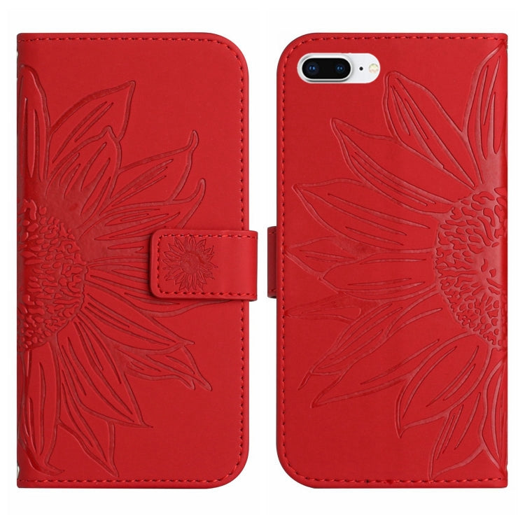 Funda de Cuero para iPhone 7 Plus y 8 Plus Skin Feel Sun Flower Pattern con Cordón (Rojo)