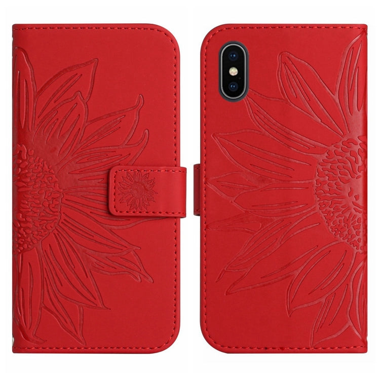 Funda de cuero para teléfono iPhone X / Xs Skin Feel Sun Flower Pattern con cordón (Rojo)