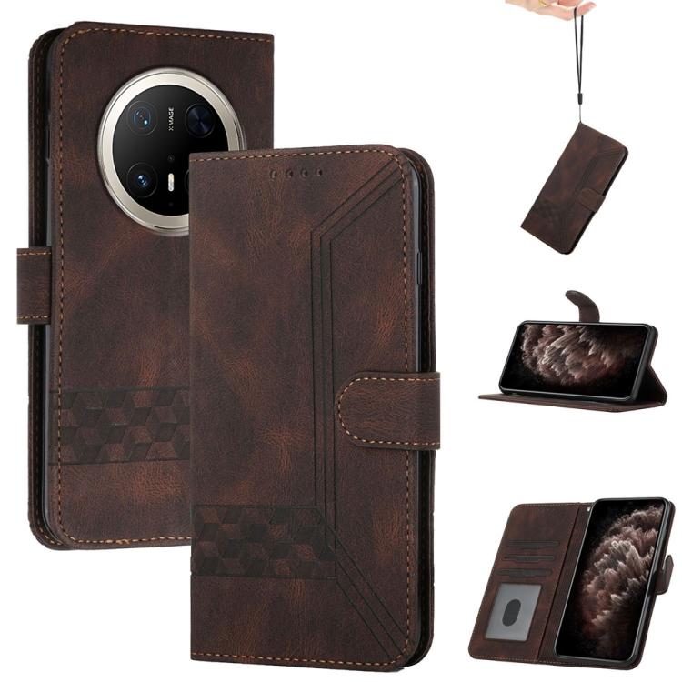 Funda de Cuero con Tapa y Tacto de Piel Cúbica para Huawei Mate 70 (Marrón)