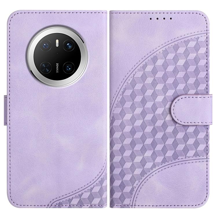 Funda de Cuero Huawei Mate 70 con Relieve Cabeza de Elefante y Cordón (Morado Claro)