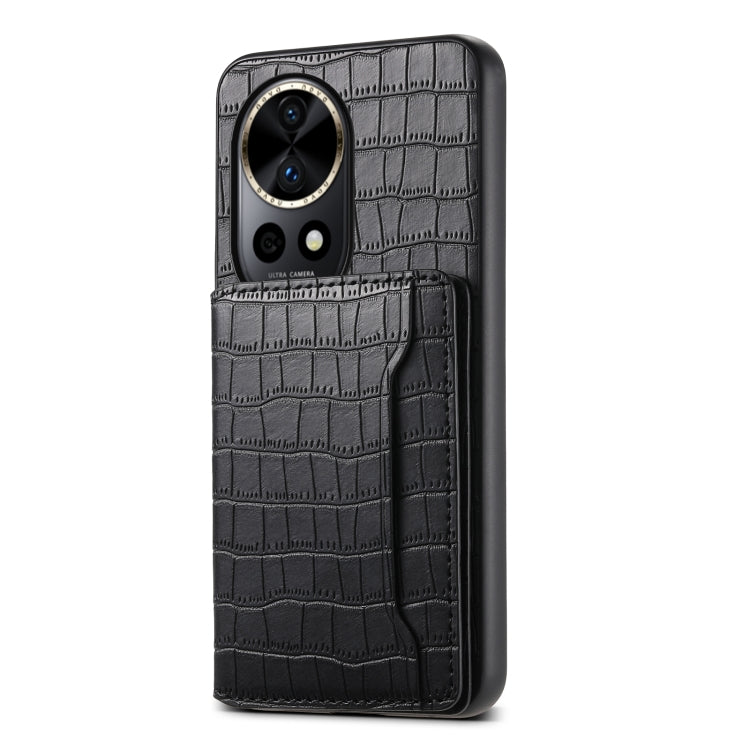 Funda para Huawei Nova 11 Pro con Diseño Bolsa para Tarjetas y Textura de Cocodrilo (Negro)