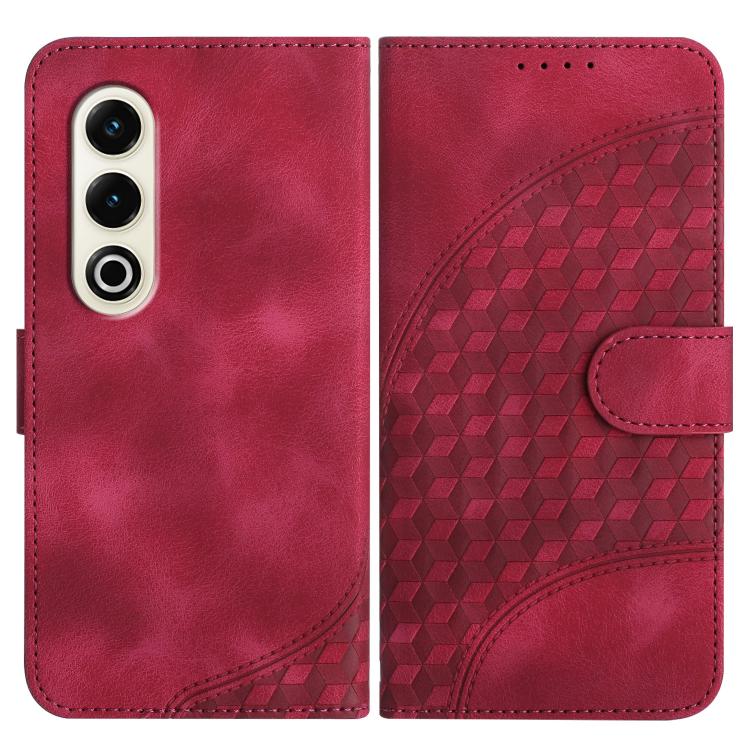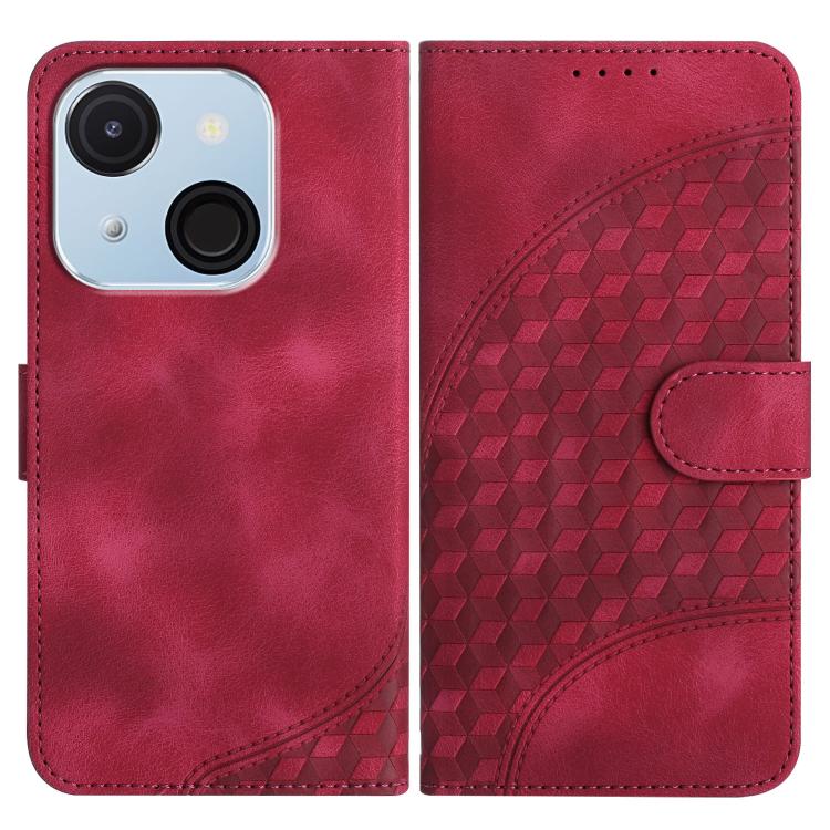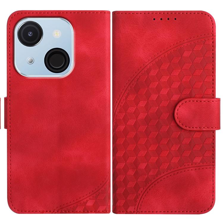 Funda de Cuero Itel S25 Ultra con Diseño Mariposa en Relieve y Cuadrícula con Cordón (Rojo)