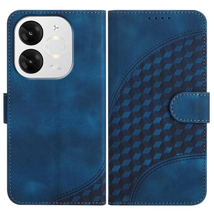 Funda de Cuero Itel A48 con Diseño en Relieve de Mariposa y Cuadrícula con Cordón (Azul Oscuro)