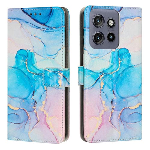 Funda de Cuero con Patrón Mármol para Motorola Edge 50 Ultra (Azul y Verde)