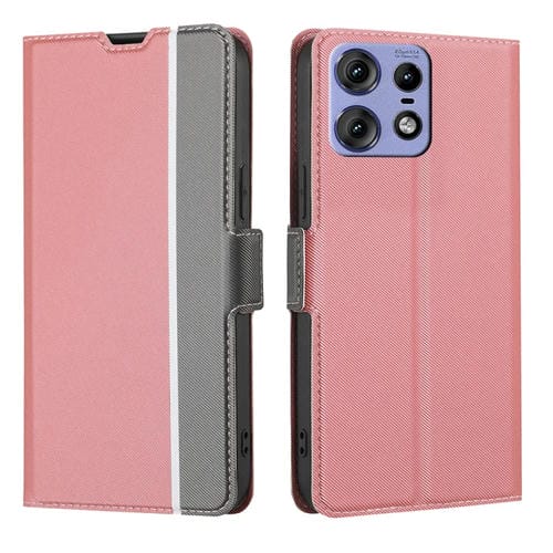 Funda de Cuero con Textura de Sarga y Botones Laterales para Motorola Edge 50 Pro 5G (Rosa)