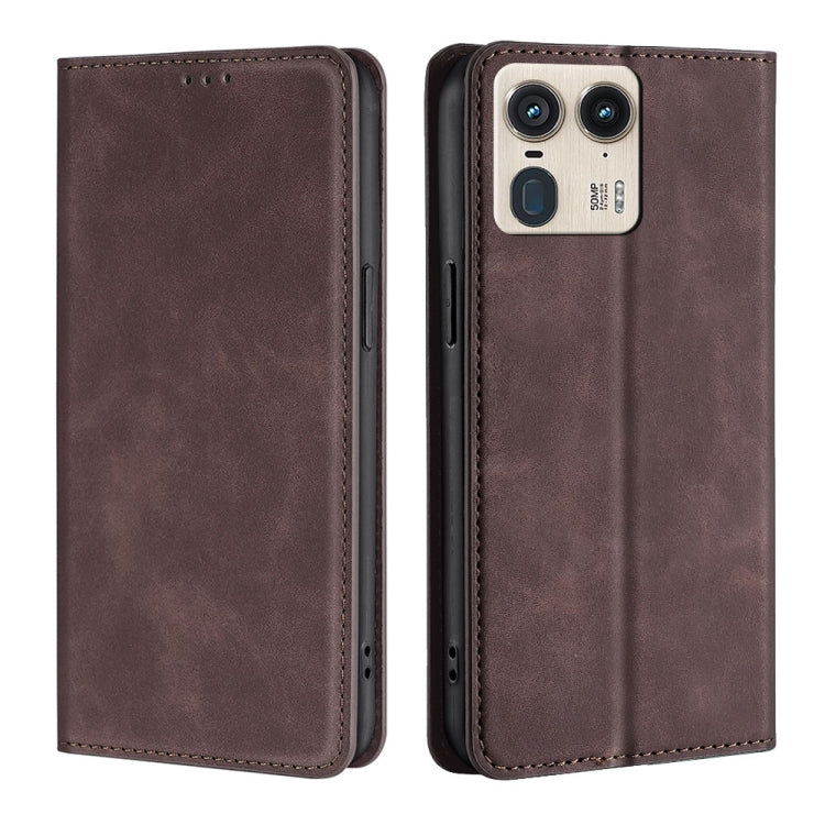 Funda de Cuero Magnética con Tacto de Piel para Motorola Edge 50 5G (Marrón Oscuro)