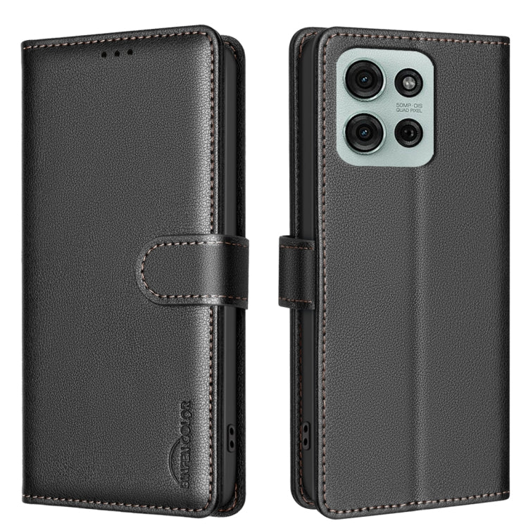 Funda de Cuero Antirrobo RFID con Textura Litchi para Motorola Moto G75 5G (Negro)