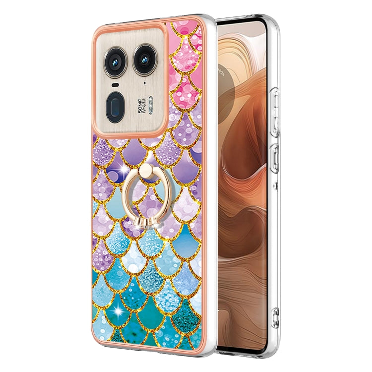 Funda TPU Galvanoplastia con Soporte para Anillo Motorola Edge 50 Ultra (Escamas de Colores)