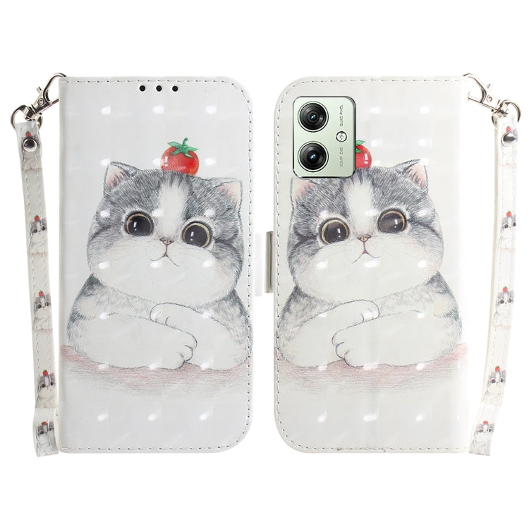 Funda de Cuero para Motorola Moto G54 con Tapa Horizontal y Diseño 3D (Lindo Gato)