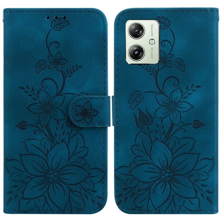 Funda para Motorola Moto G54 Lily de Cuero en Relieve (Azul Oscuro)