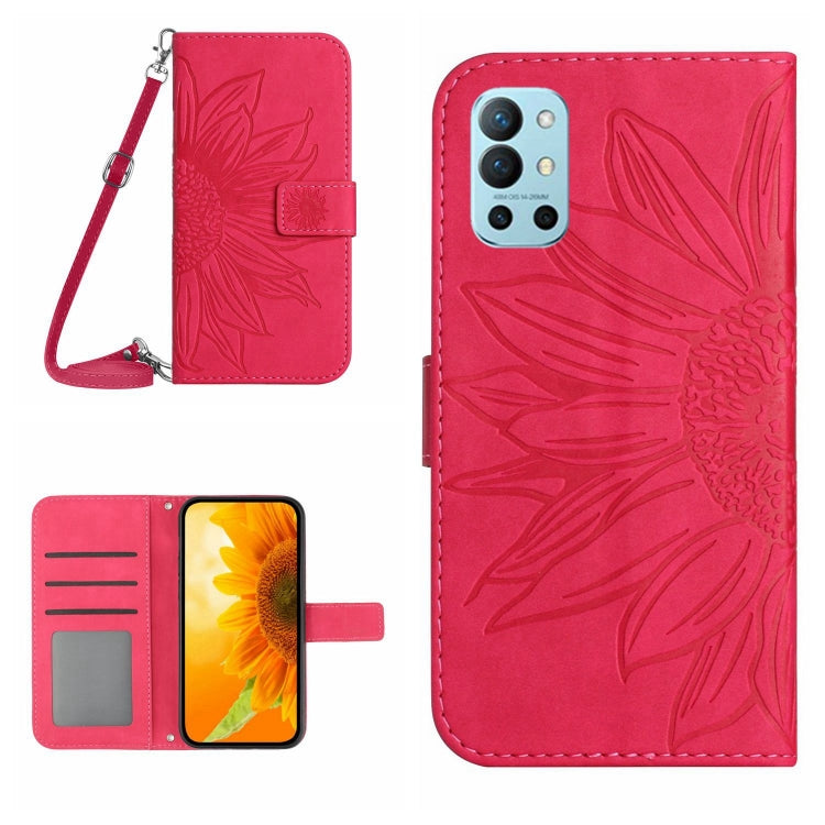 Funda Flip de Cuero para OnePlus 9 con Cordón y Estampado Sun Flower (Rose Red)