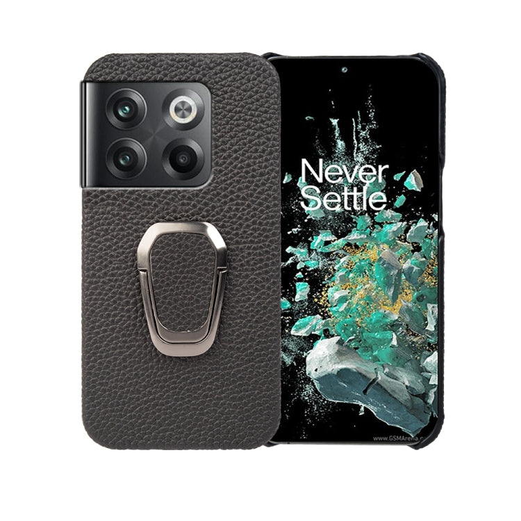 Funda de Cuero Genuino para OnePlus Ace Pro / 11T con Ring Holder y Textura Litchi (Negro)