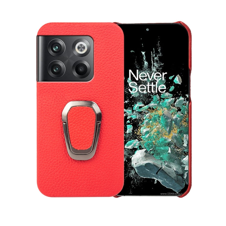 Funda de Cuero Genuino para OnePlus Ace Pro / 11T con Ring Holder y Textura Litchi (Rojo)