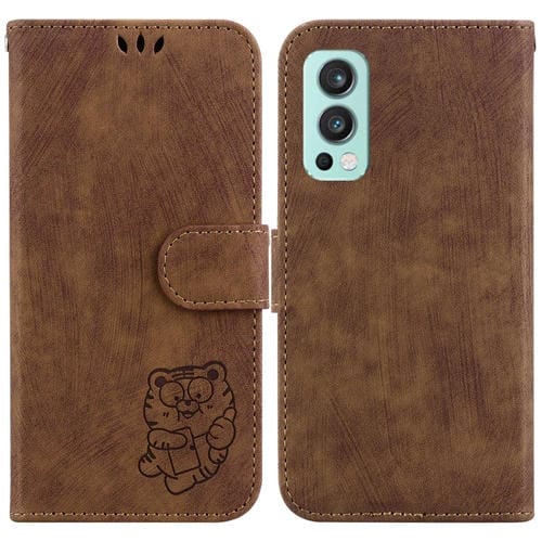 Funda de Cuero con Relieve Little Tiger para OnePlus Nord 2 5G (Marrón)