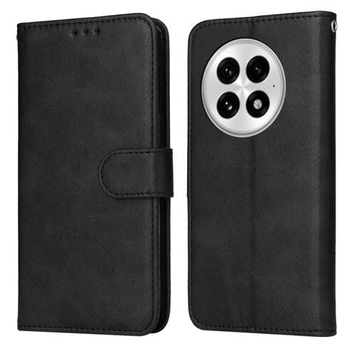 Funda de Piel con Tapa y Textura Clásica de Piel de Becerro para OnePlus 13 (Negra)