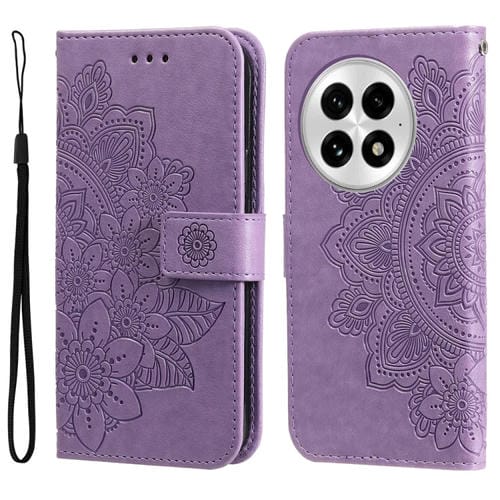Funda de Cuero con Relieve Flores de Siete Pétalos para OnePlus 13 (Morado Claro)