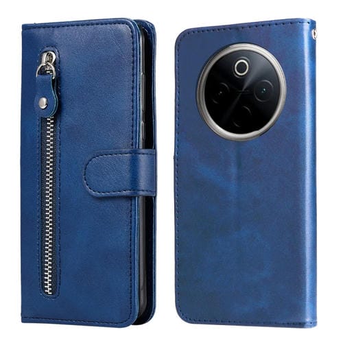 Funda de Piel con Cremallera y Textura de Becerro para OnePlus 13 (Azul)