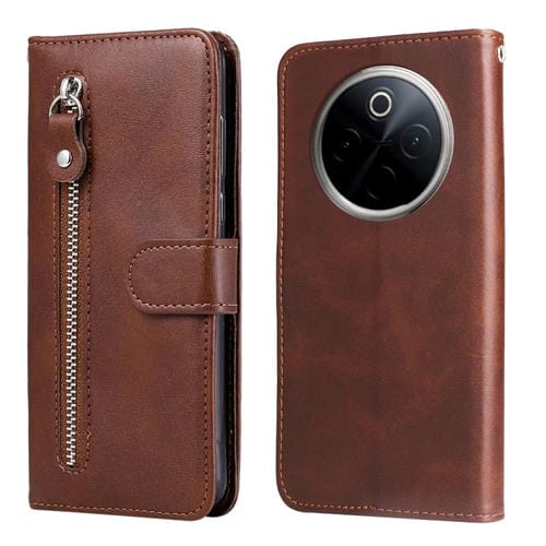Funda de Piel con Cremallera y Textura de Becerro para OnePlus 13 (Marrón)