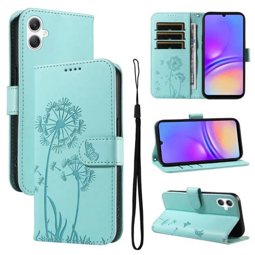 Funda de cuero con tapa y diseño de diente de león en relieve para Samsung Galaxy A07 5G (verde)