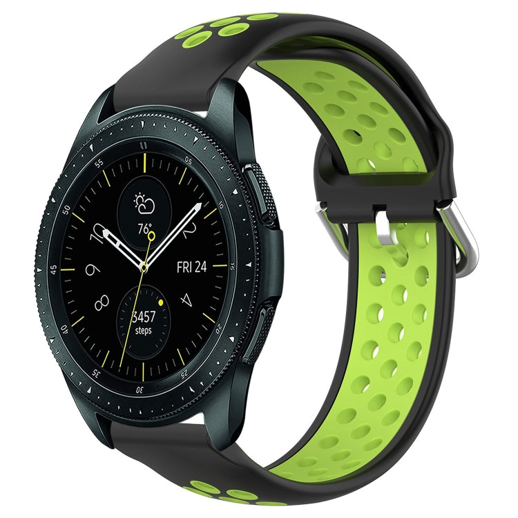 Banda de Reloj para Samsung Galaxy Watch 42mm 20mm Silicona Deportiva Perforada (Negro + Lima)