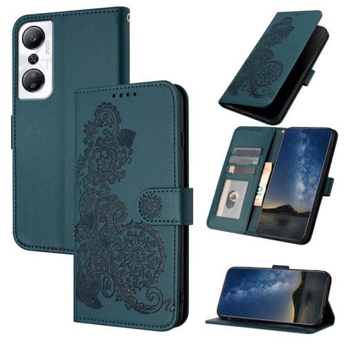 Funda de Cuero con Tapa con Relieve Flor de Datura para Infinix Hot 50 Pro 4G (Verde Oscuro)