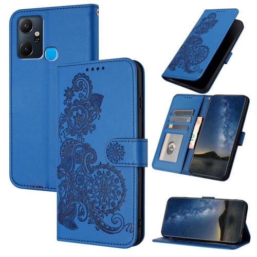 Funda de Cuero con Tapa y Relieve Flor de Datura para Infinix Smart 6 / Smart 6 HD (Azul)