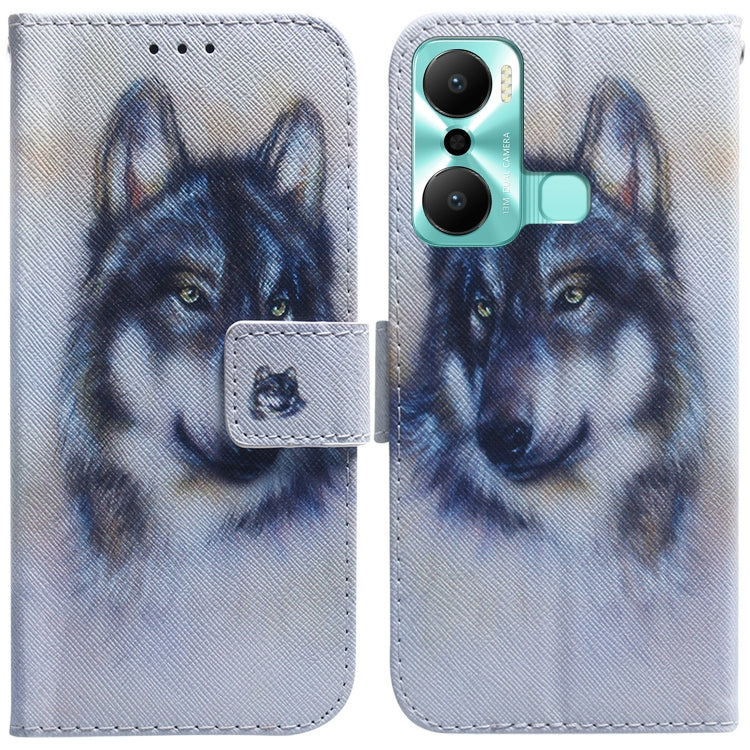 Estuche de Cuero para Infinix Hot 20 Play con Tapa y Dibujo Coloreado (Lobo Blanco)