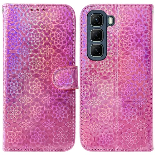 Funda de Cuero con Dibujo de Colores y Textura de Cristal para Infinix Hot 50 5G (Lily)