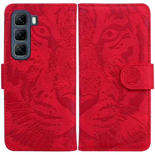 Funda de Cuero con Tapa y Estampado de Tigre para Infinix Hot 50 4G (Rojo)