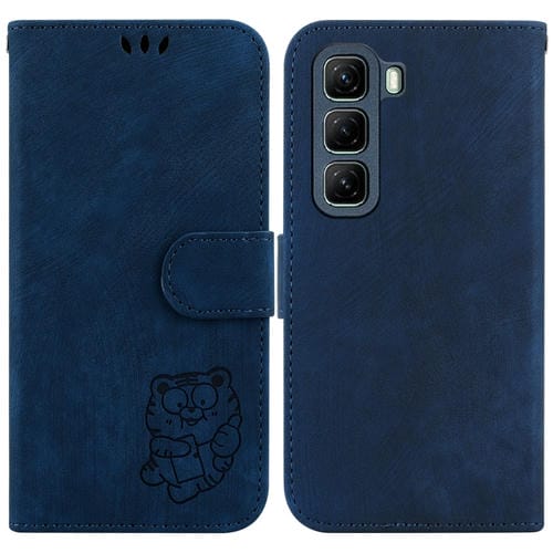 Funda de Cuero con Relieve de Tigre para Teléfono Infinix Hot 50 4G (Azul Oscuro)