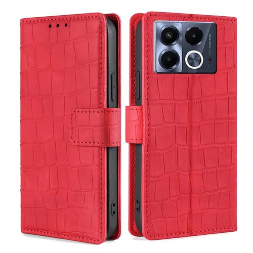 Funda de Piel con Cierre Magnético para Infinix Note 40 5G (Roja) con Tacto de Piel de Cocodrilo