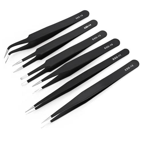 Jogo de Pinças Antiestáticas de Aço Inoxidável 6 em 1 Manipulação Precisa