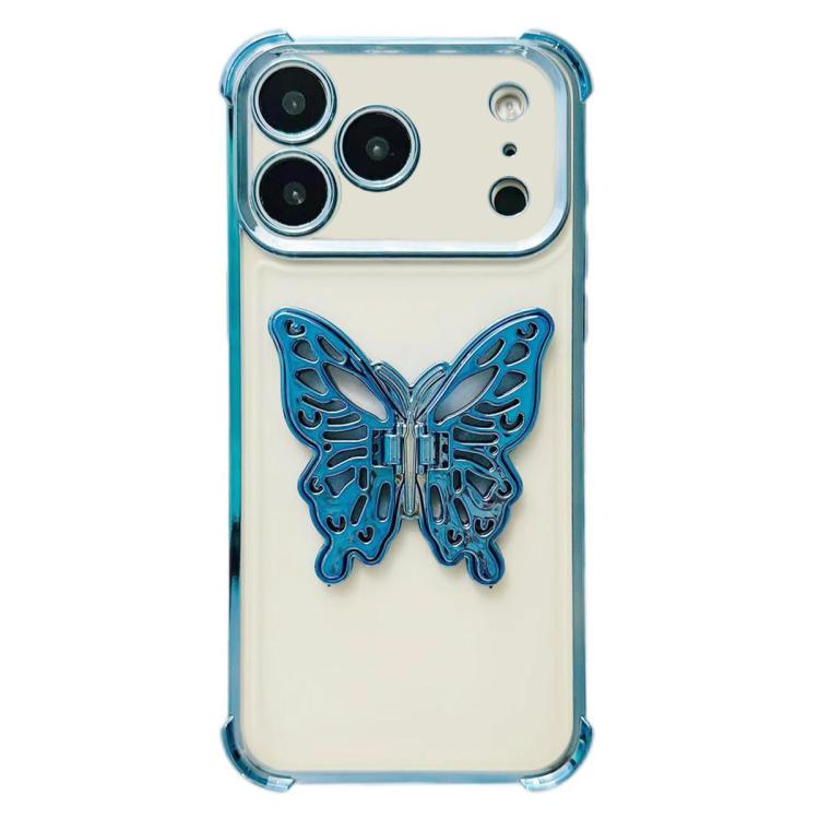 Funda de TPU con diseño de mariposa 3D galvanizada para iPhone 17 Pro (azul)
