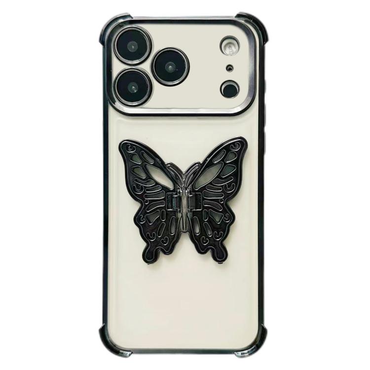 Funda de TPU con diseño de mariposa 3D galvanizada para iPhone 17 Pro (negra)