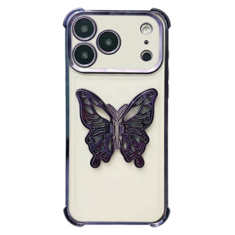 Funda de TPU con diseño de mariposa 3D galvanizada para iPhone 17 Pro (morada)
