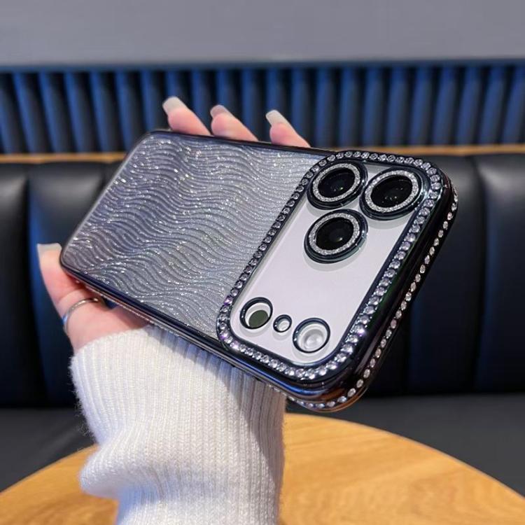 Funda de TPU con purpurina y degradado de agua con diamantes para iPhone 17 Pro (negra)