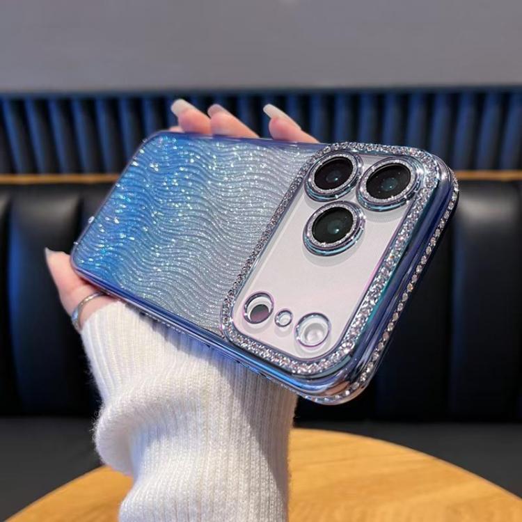 Funda de TPU con purpurina y degradado de agua con diamantes para iPhone 17 Pro (azul)