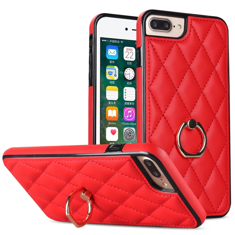 Estuche de Teléfono iPhone 7 Plus 8 Plus Cuero PU Rómbico Soporte Anillo (Rojo)