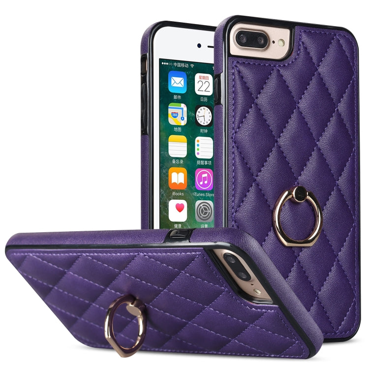 Estuche de teléfono iPhone 7 Plus 8 Plus Cuero de PU Rombal con soporte para anillo (Púrpura)