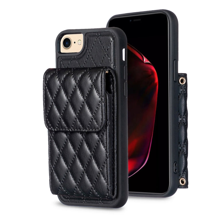 Estuche de teléfono iPhone SE 2022 SE 2020 7 8 Cuero Rómbico con Billetera Vertical (Negro)