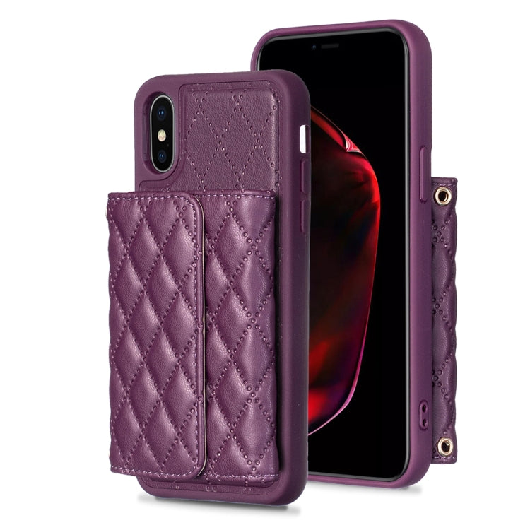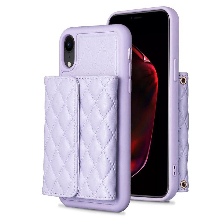 Estuche de teléfono iPhone Xr Cuero Rómbico con Billetera Horizontal (Púrpura)