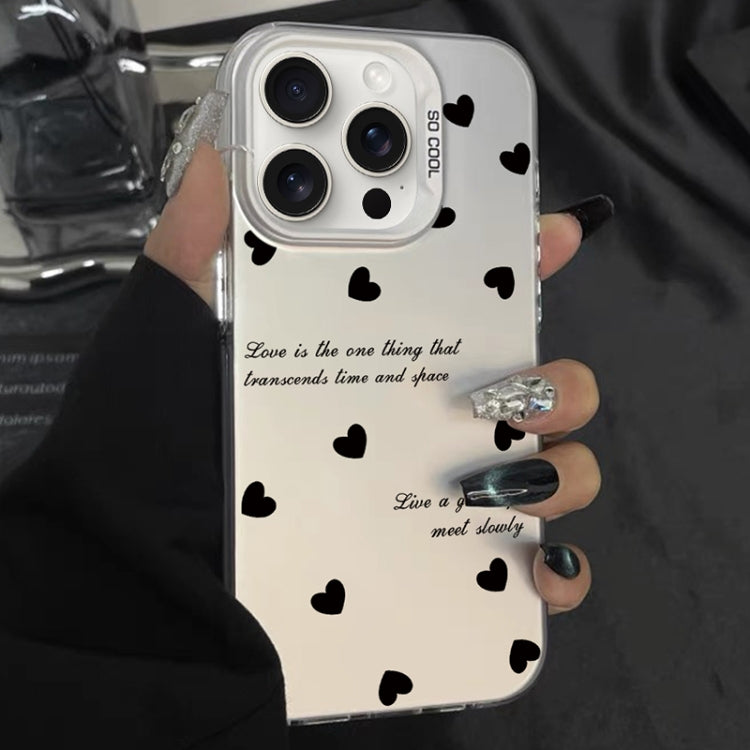 Estuche híbrido para iPhone 15 Pro TPU con pintura plateada para PC (Love Hearts Black)