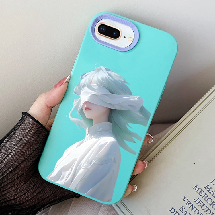 Estuche híbrido para iPhone 7 Plus 8 Plus TPU con PC con Los Ojos Vendados (Cian Cielo)