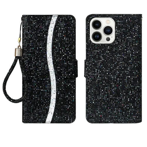 Estuche para iPhone 15 Pro Max Cuero con Tapa en Polvo con Purpurina (Negro)