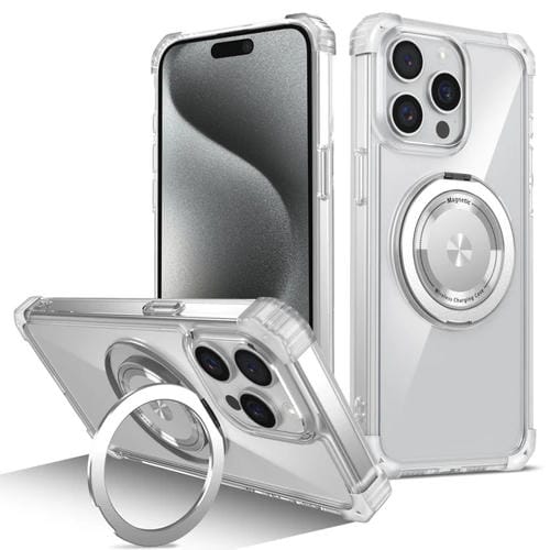 Estuche para iPhone 15 Pro Max Glitter Magsafe Magnético con Soporte (Blanco Transparente)