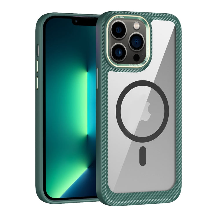Caja del teléfono iPhone 13 Pro Max Magsafe Fibra de Carbono Panel Trasero Transparente (Verde)
