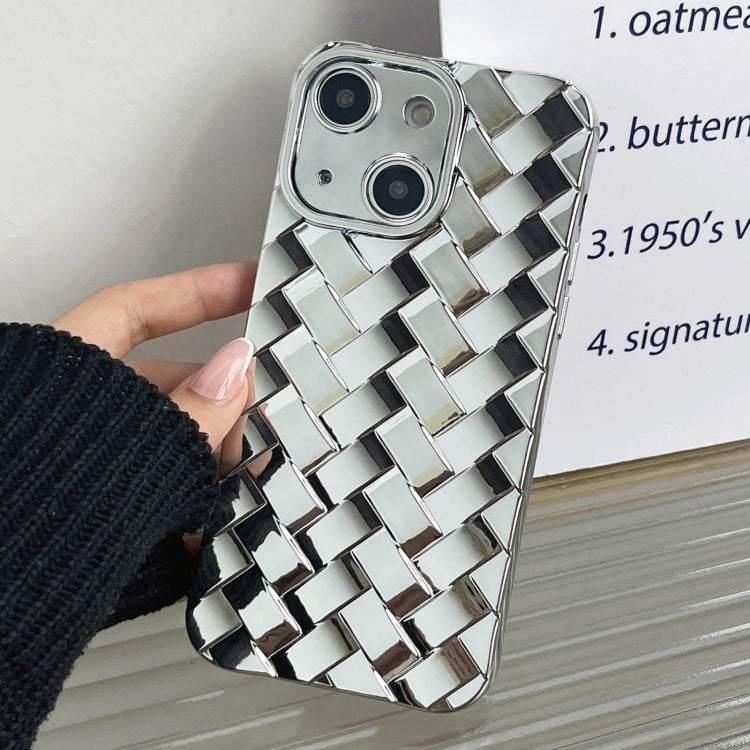 Caja del Teléfono para iPhone 14 Woven Grid 3D Galvanoplastia Grabado Láser (Plata)